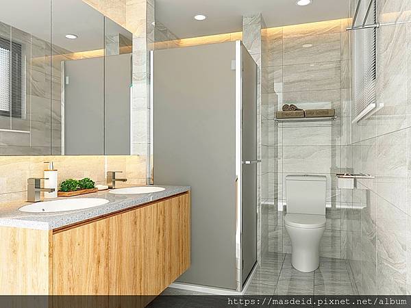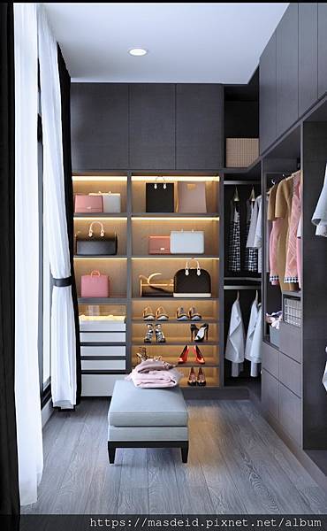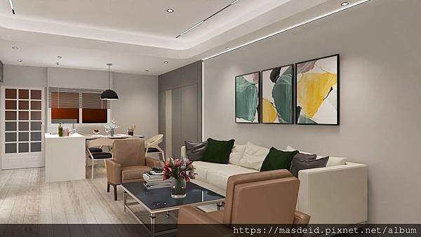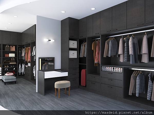 舊屋翻新, 室內格局異動調整,保留原有4房/兩廳/3衛機能, 增設主臥更衣室, 採現代風格造型設計規劃