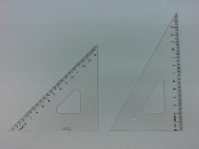 是以45及60兩片三角板組成一套,一般材質有塑膠製品及壓克力製品。