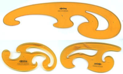 描繪各種曲線變化時,即可藉助雲形板、橢圓形板、曲線尺的特性繪製。