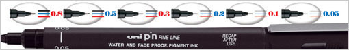 大多是在鉛筆完稿後,再利用針筆將物體描繪一次,使圖面上的線條看起來更加清晰、明確。
